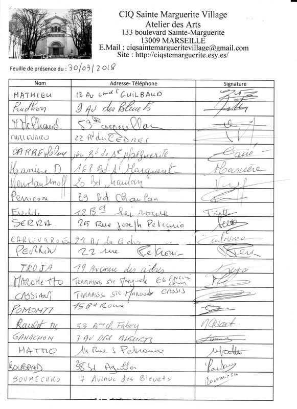 Compte Rendu de la Réunion du 30 mars 2018 à 18h
